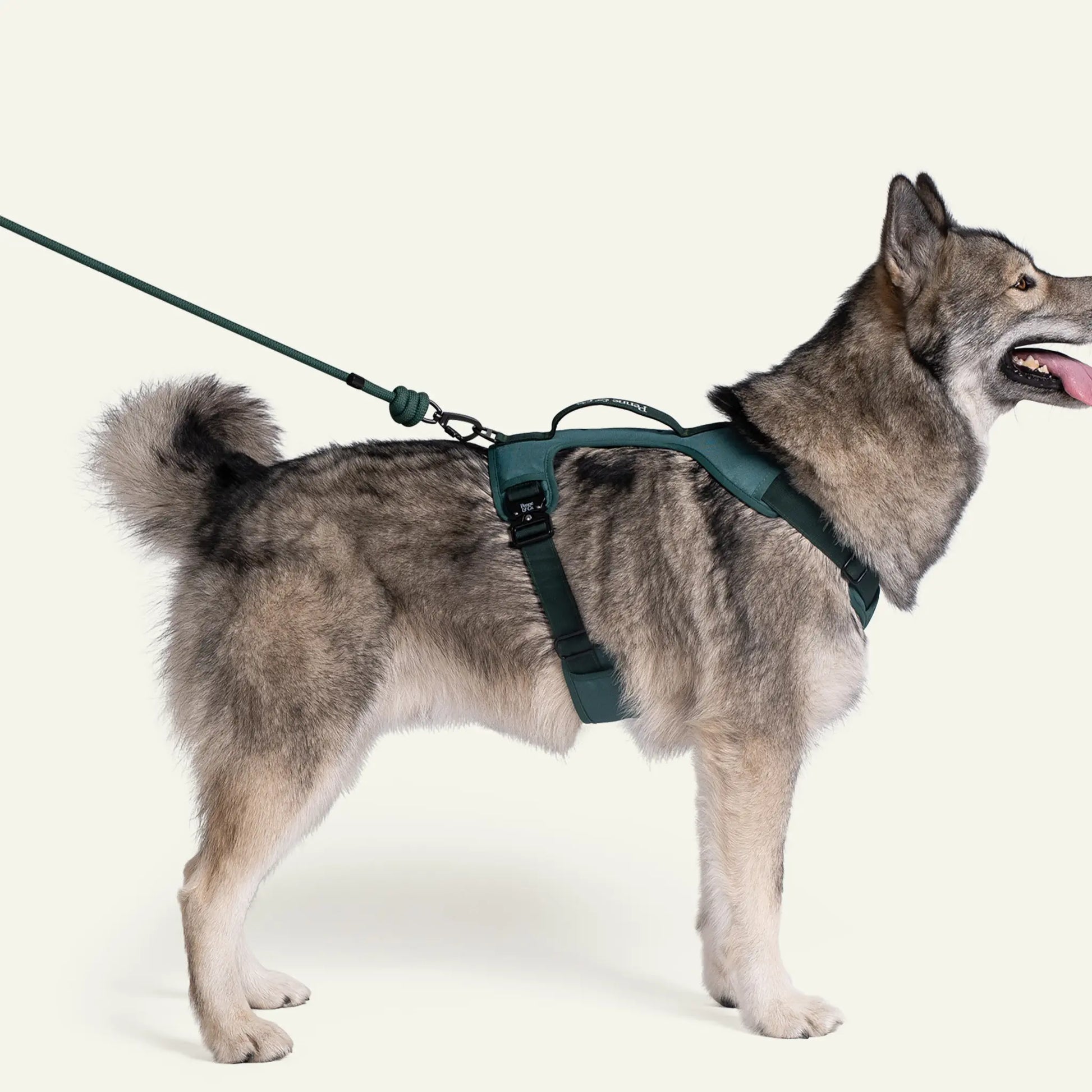 It can also be worn sash-style across the body, leaving your hands free for climbing, navigating, or simply using your phone. A padded handle keeps your grip comfortable, while a welded D-ring near the base lets you clip on waste bags or accessories. Lightweight, packable, and durable, it’s built to keep pace with dogs who don’t slow down.