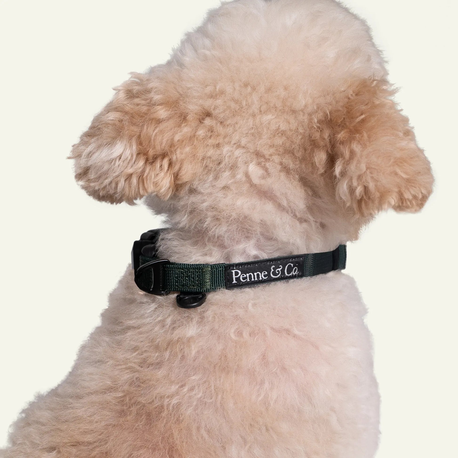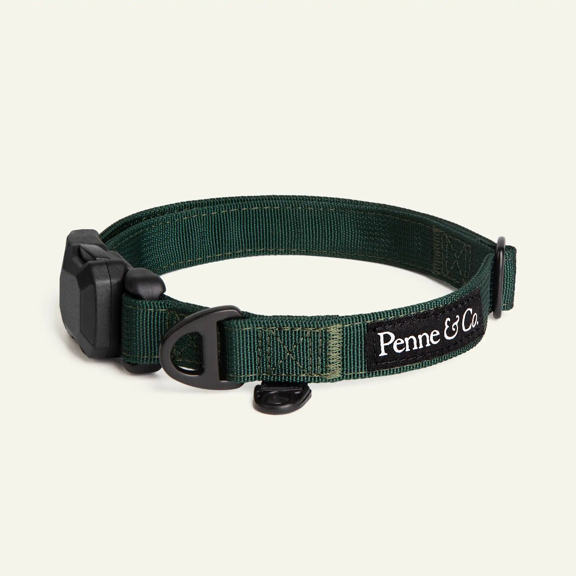 The closure clicks in fast and stays put, making it ideal for dogs who don’t stand still. The collar’s nylon webbing is soft to the touch but strong enough for daily wear, finished with refined embroidery and tonal trim.